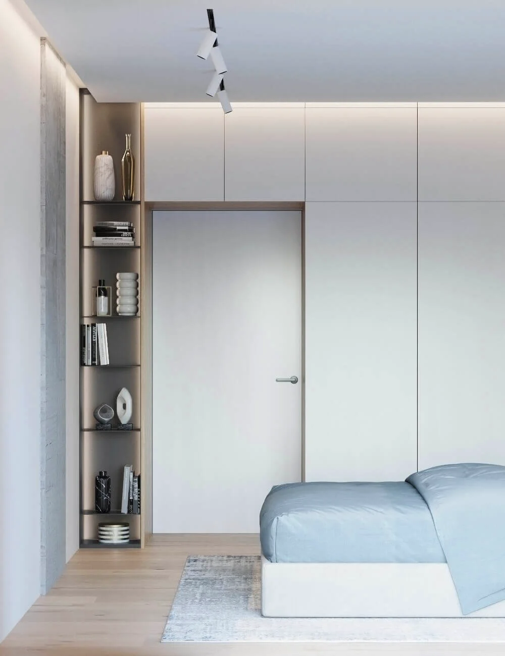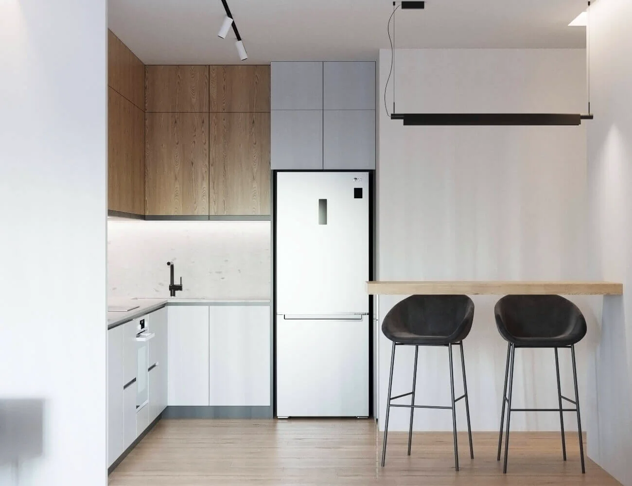 Квартира исполнена в современном минималистическом стиле. В площадь 65 м2 уместились – объединенная кухня-гостиная, мастер спальня, гостевая спальня и две ванные комнаты. Главным пожеланием заказчиков было создать максимально светлое пространство.