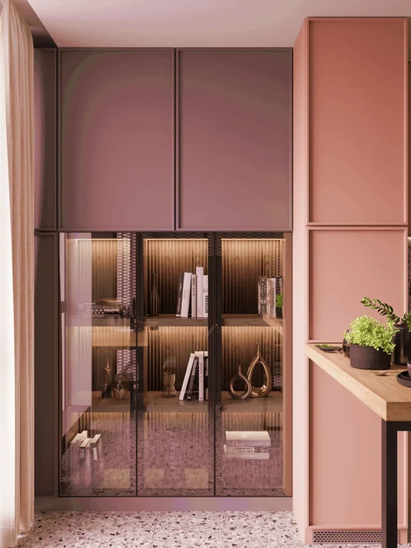 Яркий акцент проекта – цветовая палитра и пастельные элементы в кухне.